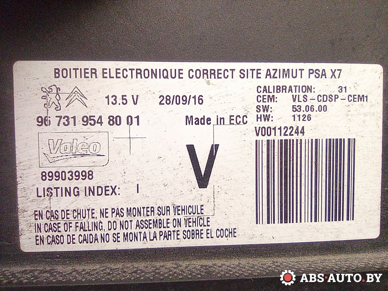 | Номер запчасти | 9673195480, 89903998 |