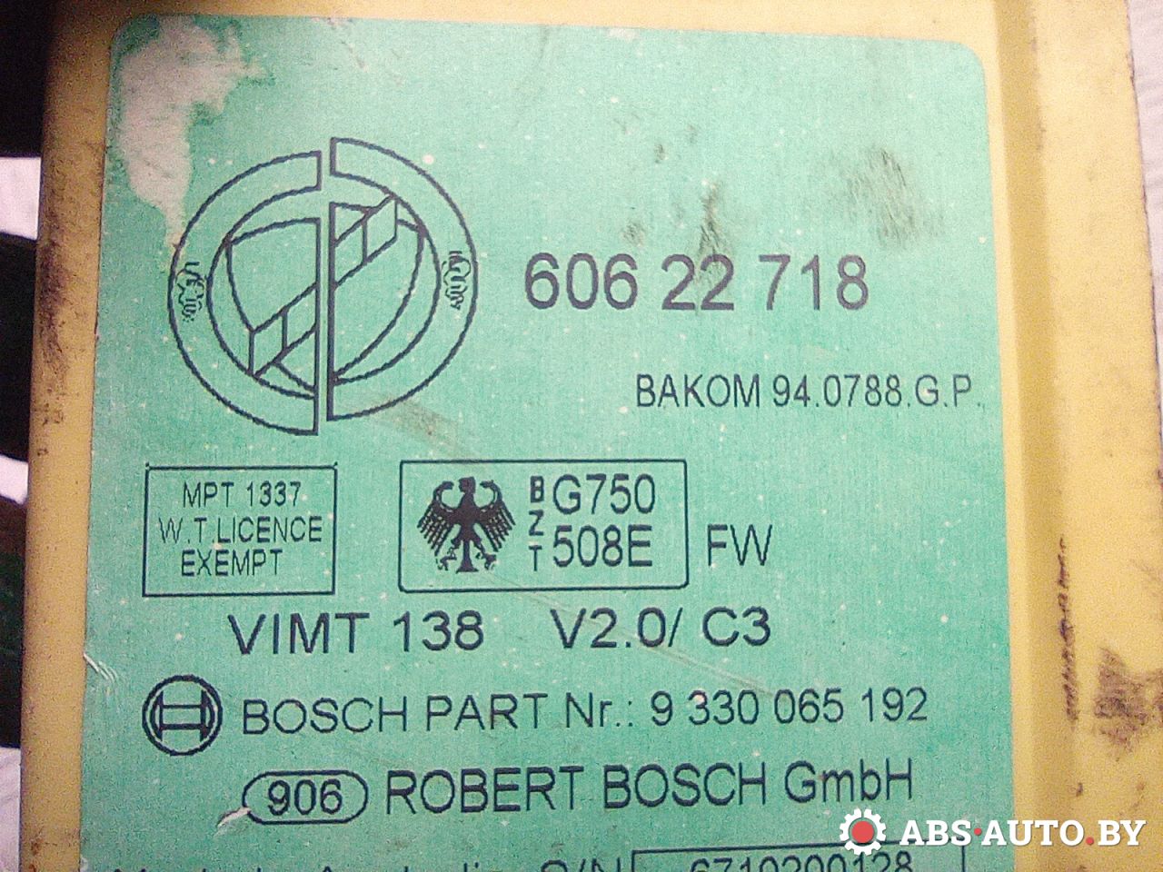 | Номер запчасти | 60622718 |