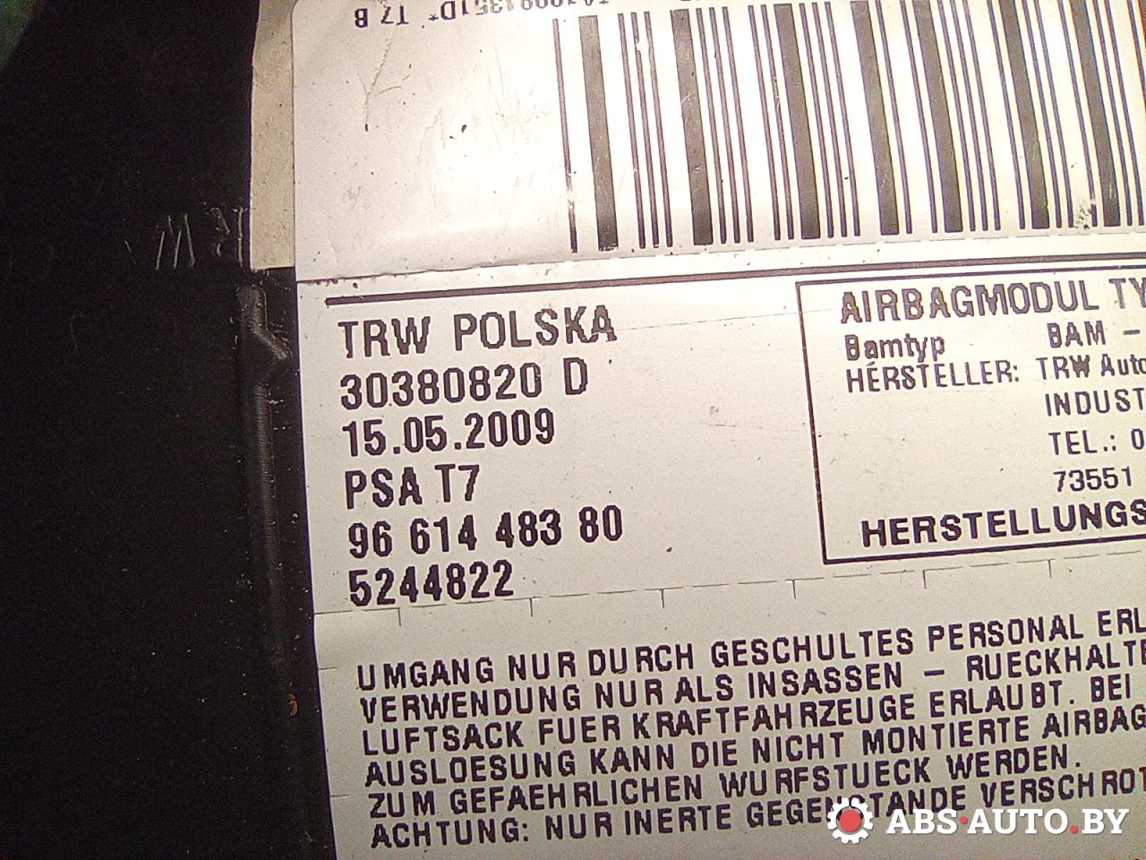 | Номер запчасти | 9661448380, 30380820D, 5244822 |